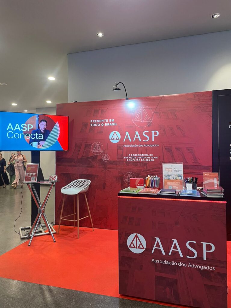As pessoas participantes também puderam conhecer mais sobre o ecossistema de produtos e serviços da AASP, que apoia e fortalece o exercício da Advocacia em todo o país em um estande exclusivo.