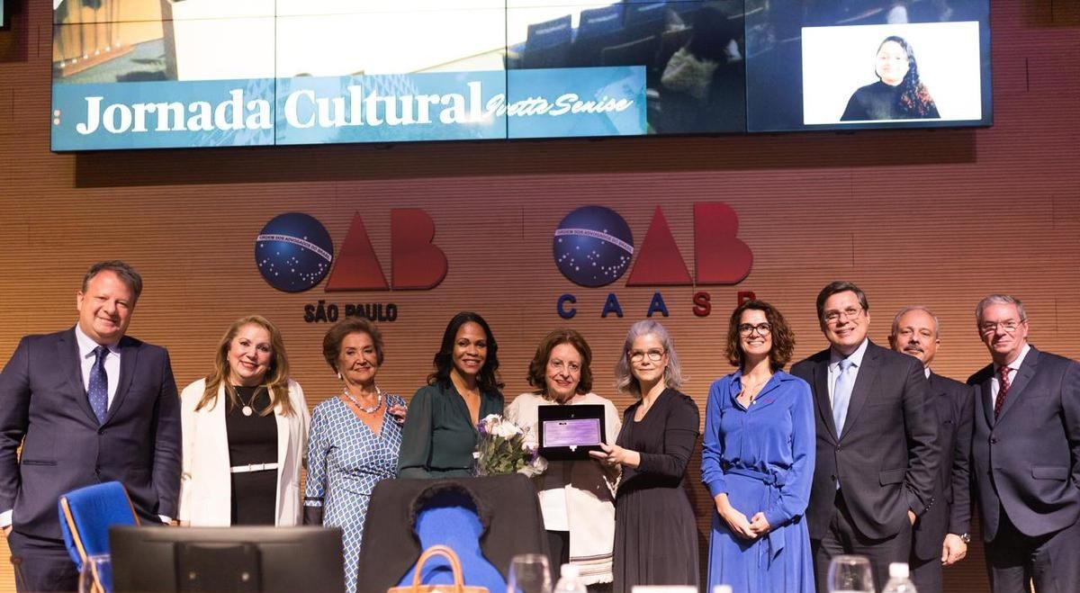 Ao término da solenidade, Senise recebeu das mãos da Presidente da Seccional, Patricia Vanzolini, uma placa com seu nome registrado oficialmente na Jornada Cultural.
