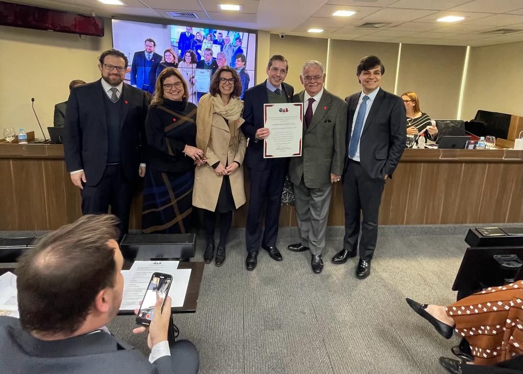 Representada por seu Presidente, Eduardo Mange; pelo Diretor Administrativo, André Garcia; pela Diretora Jurídica, Clarisse Frechiani Lara Leite, e pela Diretora Adjunta, Renata Mariz de Oliveira, a Associação foi homenageada durante a 2.502ª Sessão Ordinária do Conselho Pleno da OAB SP pelos seus 80 anos de fundação.