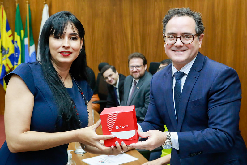 O Presidente da AASP também participou da solenidade de entrega de carteiras, compondo a mesa de autoridades, onde presenteou às novas Advogadas e advogados inscritos, com todo o ecossistema de produtos e serviços da Associação, por 180 dias.