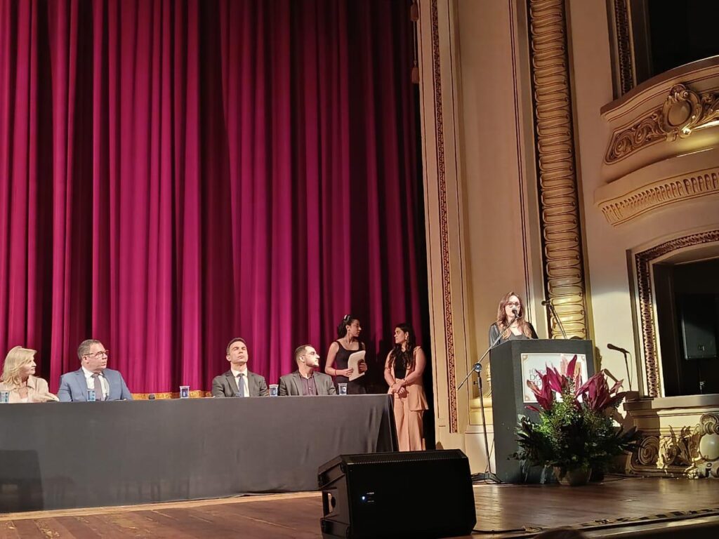A Conselheira da AASP Helena Mechlin Wajsfeld Cicaroni participou da palestra de abertura com o tema Inteligência Artificial e Cidadania: Desafios e Perspectivas para os Direitos Fundamentais. Durante a sua fala, agradeceu a parceria, que coloca estudantes em contato com o ecossistema de produtos e serviços da Associação, facilitando a rotina acadêmica e potencializando o exercício profissional.