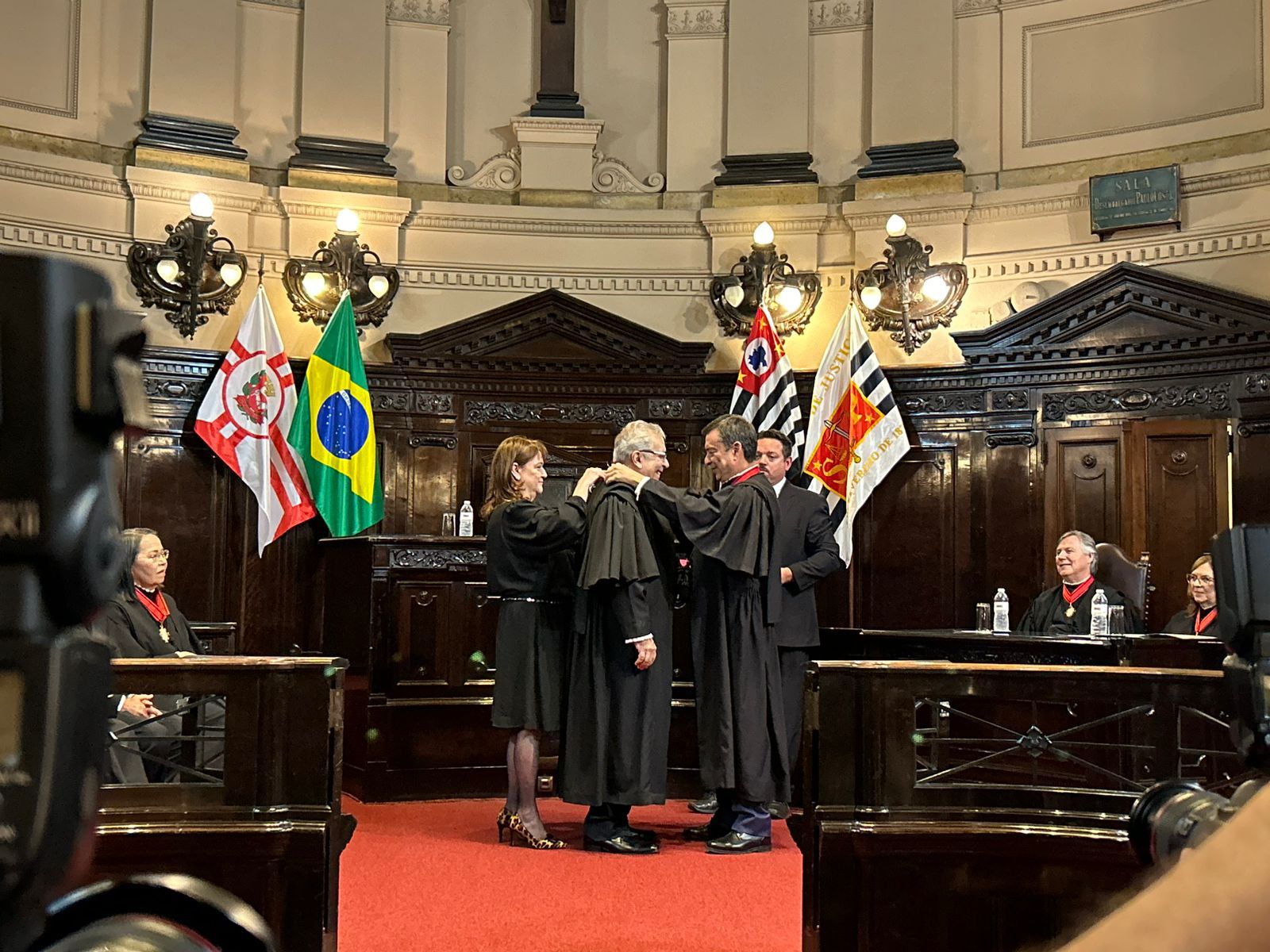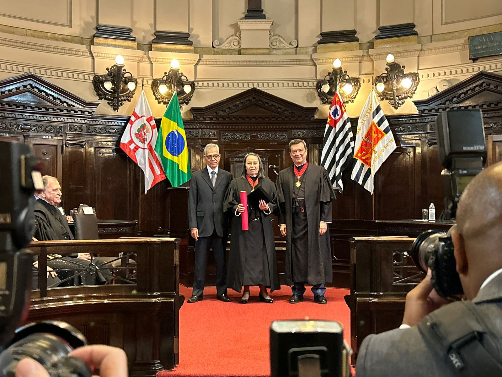 Na ocasião, celebrada no Salão do Júri, foram empossados da egrégia corte os desembargadores Ely Amioka, Eduardo Gesse e Nazir David Milano Filho, que discursaram agradecendo à promoção ao mais alto título da carreira da magistratura.