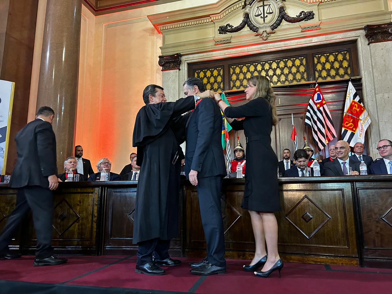 A sessão, que representou a Abertura do Ano Judiciário de 2025, foi presidida por Fernando Torres Garcia, Presidente do Tribunal de Justiça de São Paulo, que parabenizou o homenageado e realizou a entrega do Colar ao Ministro.